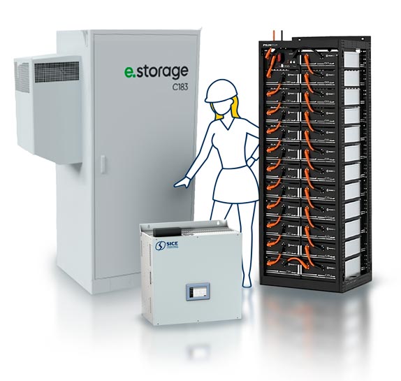 Este sistema flexible permite que las baterías almacenen y suministren energía a la carga cuando sea necesario, evitando la inyección de excedentes. Además, mejora la eficiencia y la calidad de la energía al proteger las cargas contra caídas de tensión (sags) y microcortes, gracias a su sistema de transferencia de alta velocidad y su EMS configurado para realizar funciones de despacho y gestión de la calidad de energía.